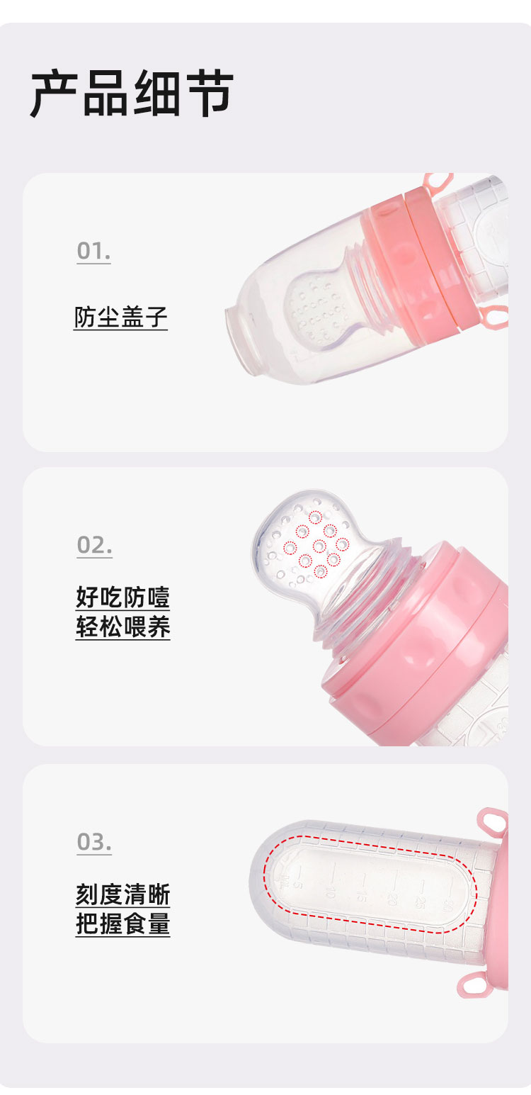 獨特的勺瓶一體化設計,既是勺子也是小瓶子,一勺多用,輕松應對各種喂養場景。無論是沖泡奶粉、裝輔食還是直接喂食,都能輕松搞定,省去頻繁更換餐具的麻煩,讓媽媽喂養更加省心省力。