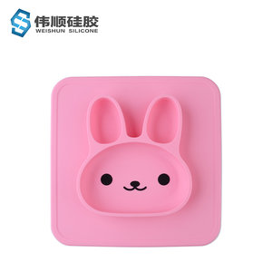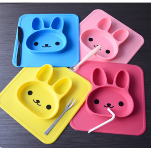 1、可愛的卡通兔子餐盤,食品級硅膠材質,背后吸盤,可以牢牢吸在桌子上。