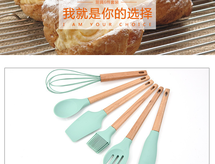 - 木柄硅膠廚具6件套,硅膠廚具六件套木柄