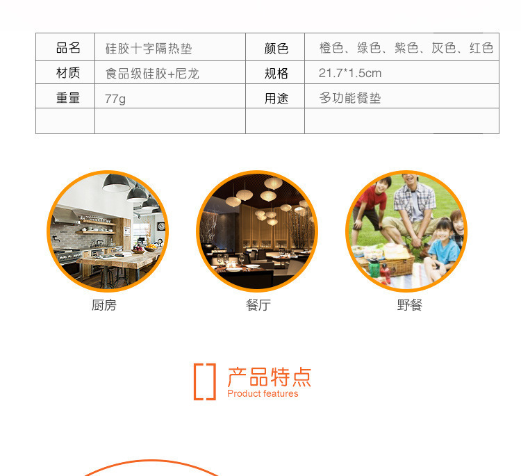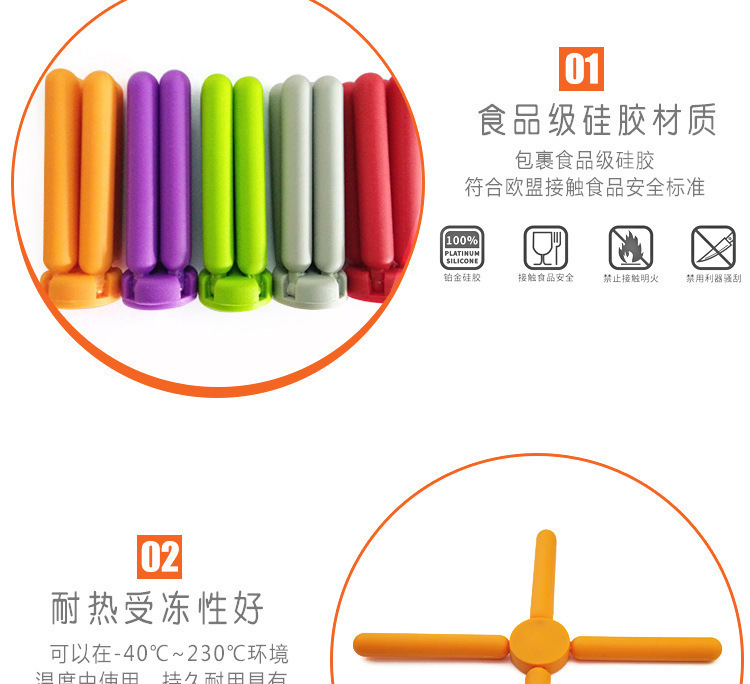 2、耐熱受凍性好,可以在-40℃~230℃環境溫度中使用,持久耐用具有優良的防滑效果,并且硅膠柔軟的特性,保護廚具不易受損,是您生活中的好幫手