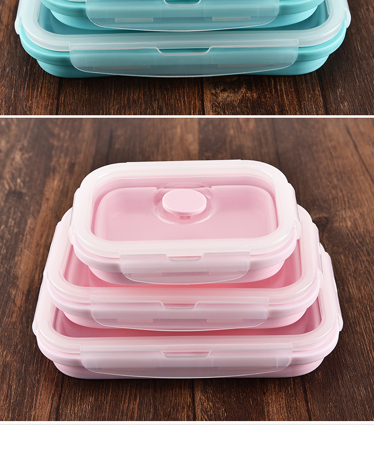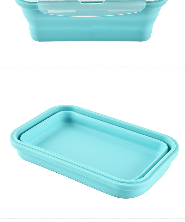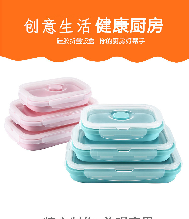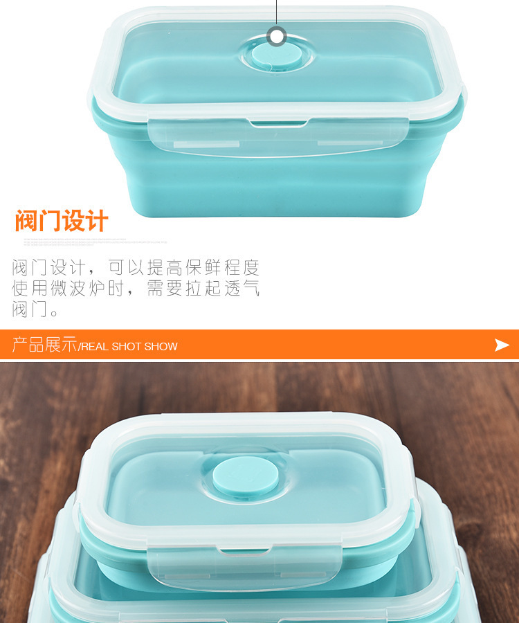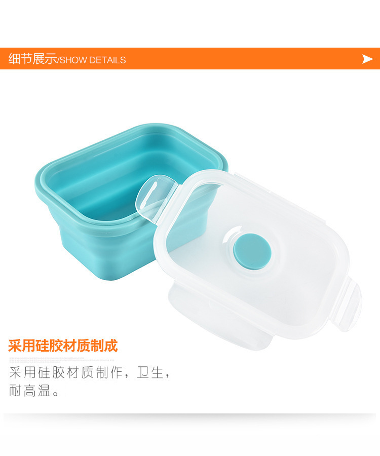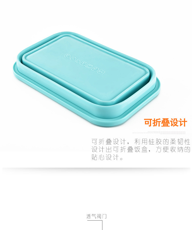 2、可折疊設(shè)計(jì),利用硅膠的柔韌特性設(shè)計(jì)出可以折疊的飯盒,方便收納的貼心設(shè)計(jì)