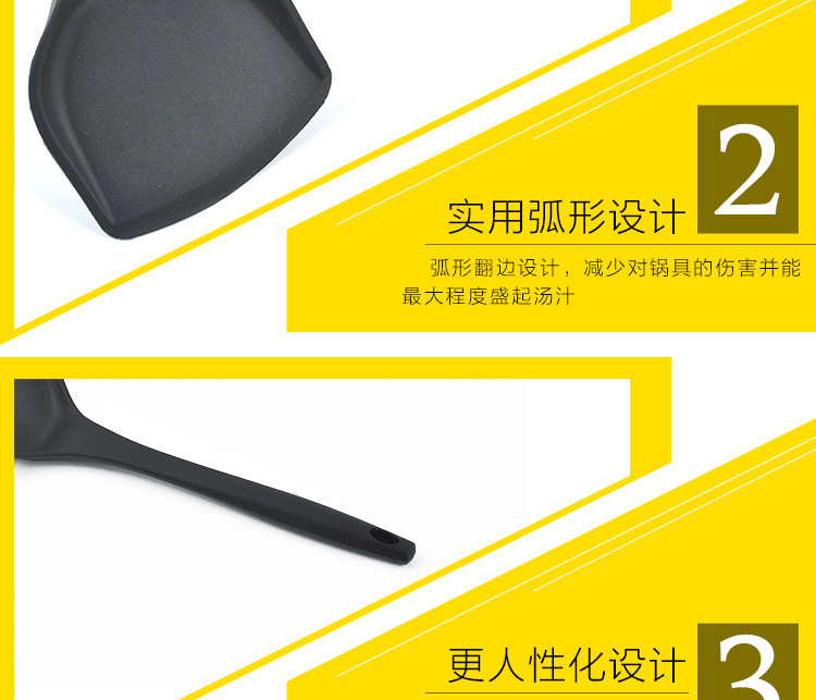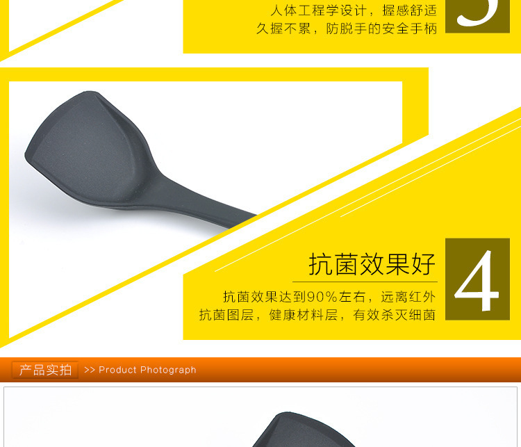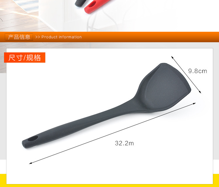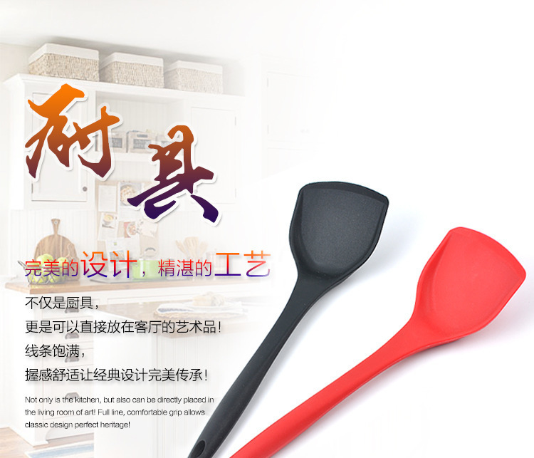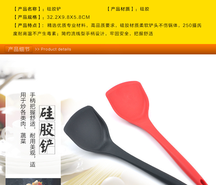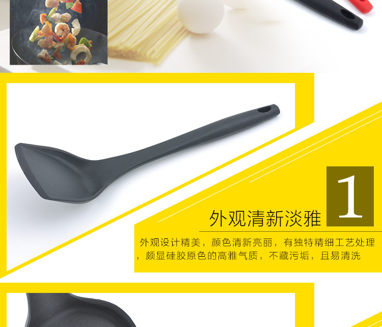 1、精選優(yōu)質(zhì)專業(yè)材料,高品質(zhì)要求,硅膠材質(zhì)柔軟鏟頭不傷鍋體,250℃耐高溫不產(chǎn)生毒素,簡約流線型手柄設(shè)計(jì),牢固安全,把握舒適