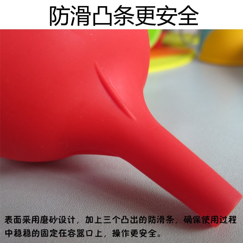 3、內壁為光面設計,硅膠材質不吸油不沾容器表面,內壁弧度優美,液體順勢流出,灌注更輕松,清洗更容易