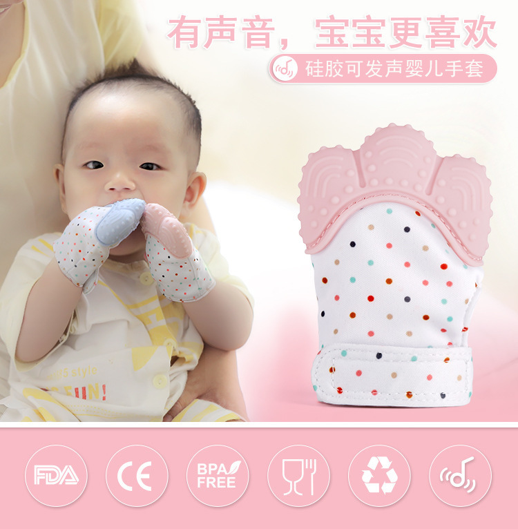 為什么寶寶挨咬手指,因為寶寶在長牙期間會牙齦發癢,牙齒疼痛等,寶寶靠著吸允,咬等口腔活動,緩解不適感,硅膠嬰兒手套輕松解決寶寶出牙煩惱,出牙期寶寶牙齦發癢,看到什么東西都想咬,手套牙膠通過按摩牙床,緩解寶寶出牙期間的各種不適,安心度過長牙期。